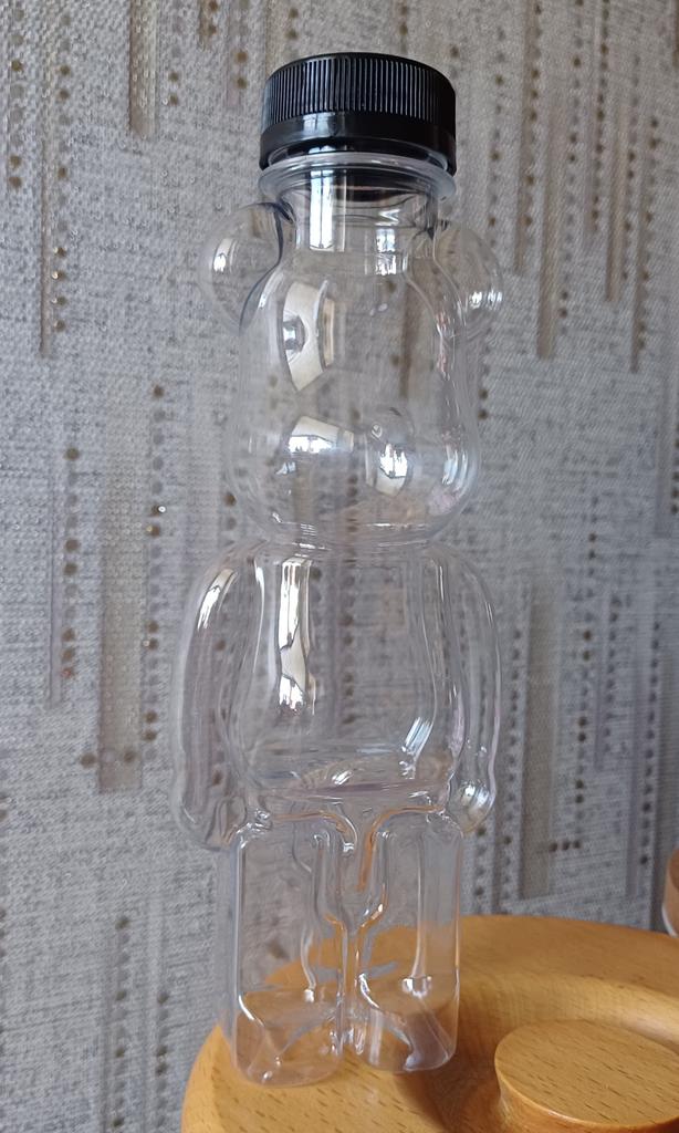 Мультяшная бутылка чая с молоком, кукольный медведь в форме прозрачной утолщенной бутылки сока