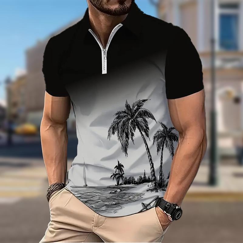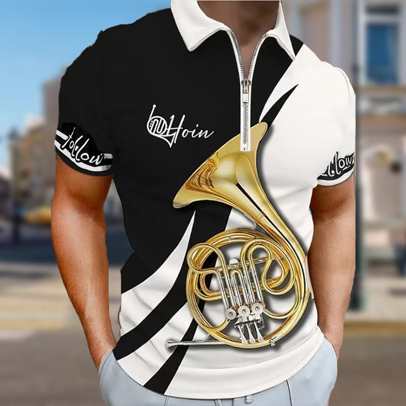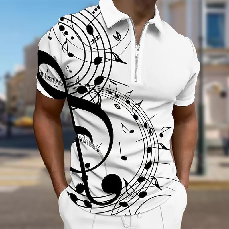 Мужская рубашка поло повседневная на молнии с коротким рукавом модная повседневная на молнии лето весна стандартный крой рубашка с принтом Coconut Tree&Notes&Horn 3D