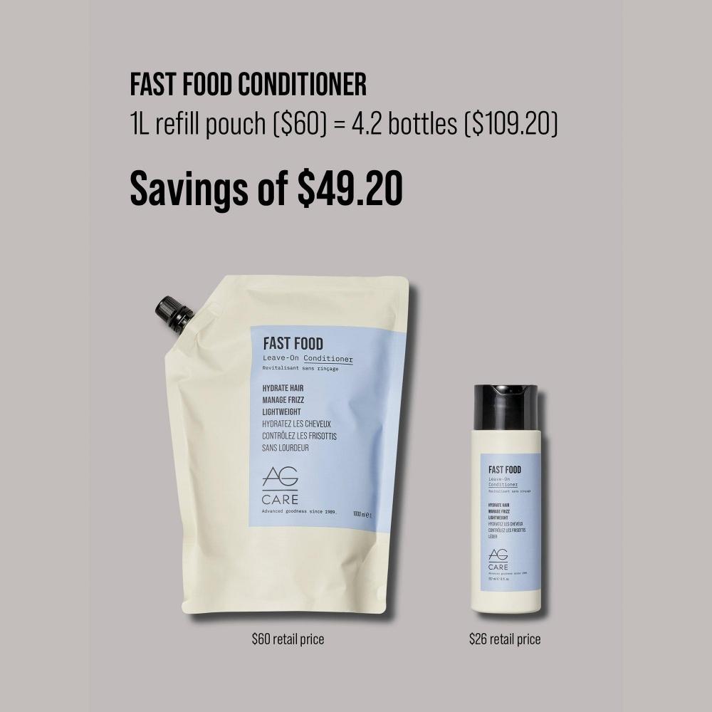 Instantly feed, smooth and calm dry or coarse hair with soothing and calming Aloe and Abyssinian oil plus additional potent humectants to add strength, shine and weightless condition with AG Care Moisture Fast Food Leave-On Conditioner.
