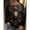 Мужские футболки с изображением животных льва на весну и осень, с круглым вырезом и длинными рукавами, мужская спортивная одежда, большие размеры, винтажная футболка с 3D-принтом