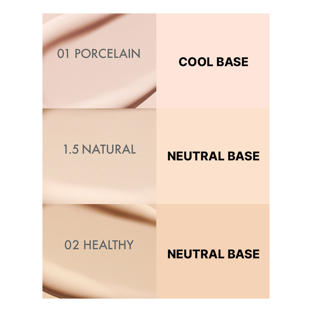 Ингредиент : вода, диоксид титана (CI 77891), Циклопентасилоксан, бутиленгликоль, этилгексилсалицилат, дифенилсилоксифенилтриметикон, лаурил ПЭГ-9 полидиметилсилоксиэтилдиметикон, синтетический фторфлогопит, диметикон, C12-15 алкилбензоат, цетилэтилгексаноат, ниацинамид, полиметилсилсесквиоксан, 1,2-гександиол, дистеардимония гекторит, метилтриметикон, оксид железа желтый (CI 77492), Изододекан, экстракт Chlorella Vulgaris, Simmondsia Chinensis (Жожоба) Масло семян, масло семян моринги масличной, гиалуронат натрия, паслен ликоперсикум. (Помидор) Экстракт фруктов, растворимый коллаген, ПЭГ-10 диметикон, сополимер акрилатов/диметикона, сульфат магния, кроссполимер стеарилдиметикона/винилдиметикона, диоксид кремния, октилдодеканол, стеариновая кислота, гидроксид алюминия, оксид алюминия, глюкоза, триэтоксикаприлилсилан, фруктоолигосахариды, фруктоза, кроссполимер винилдиметикона/метиконсилсесквиоксана, полиглицерил-4 изостеарат, полиглицерил-3 полидиметилсилоксиэтилдиметикон, гликолипиды, аденозин, тринатрийэтилендиаминдисукцинат, изопропилтитантриизостеарат, полигидроксистеариновая кислота, неопентилгликольдиэтилгексаноат, токоферол, этилгексилглицерин, глицерин, сквалан, Церамид NP, фитосфингозин, гидрогенизированный лецитин, линоленовая кислота, каприлилгликоль, ацетилгексапептид-8, ароматизатор, оксид железа красный (CI 77491), Оксид железа черный (CI 77499)