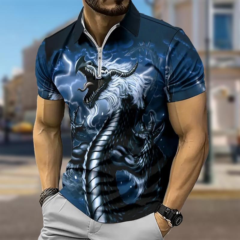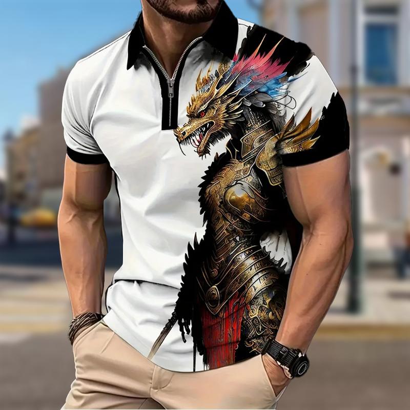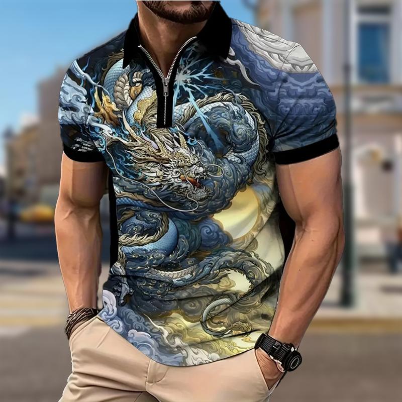 Мужская рубашка поло повседневная на молнии с коротким рукавом модная повседневная на молнии лето весна обычный крой китайская рубашка с принтом 3D лунг