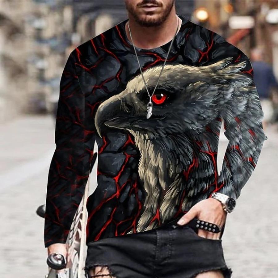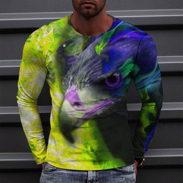 Мужская футболка весна-осень с круглым вырезом и длинными рукавами, топ с птицами, мужская спортивная одежда, пуловер с винтажным 3D-принтом больших размеров