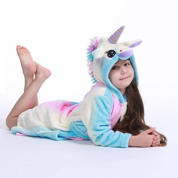 Детские ночные рубашки кигуруми, халаты с капюшоном, детский банный халат с изображением животных, одежда для сна с радужным единорогом для мальчиков и девочек
