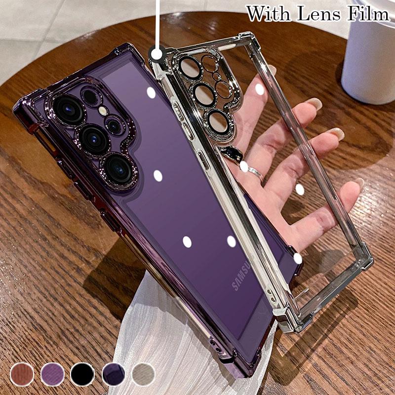 Противоударный чехол Airbag с пленкой для объектива для Samsung S24 S23 S22 S21 Ultra Plus S23FE A52 A14 A34 A54 A15 A55 iPhone 15 14 13 12 11 Pro Max 15 14 Plus