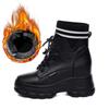 2025 Зимняя обувь Женские ботильоны Натуральная кожа Высокие каблуки Теплый плюш Женские Увеличивающие рост 9см Черный Бежевый