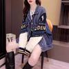 Модный кардиган Splicing, женская осенне-зимняя свободная джинсовая трикотажная куртка Tide