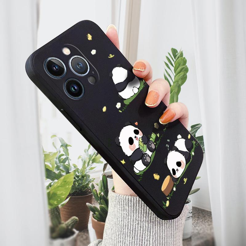 Милый чехол для телефона с милой пандой для iPhone 15 14 13 12 11 Samsung Galaxy A12 A52 S24 S23 Xiaomi POCO Redmi мягкий квадратный жидкий силиконовый чехол