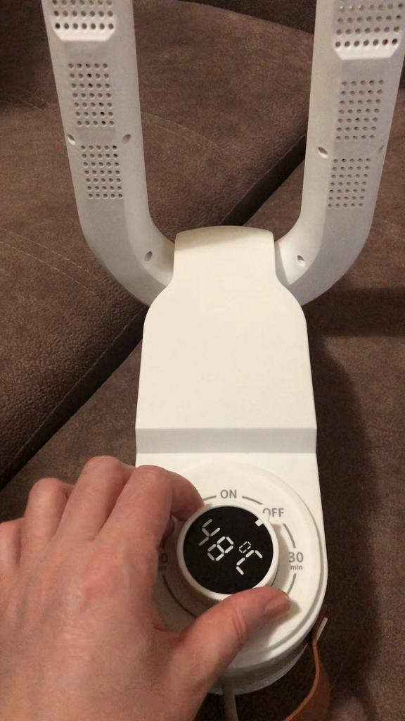 Удобная сушилка для обуви, нагревается быстро, таймер работает, запаха от пластика нет, можно поставить на пол, а можно и повесить на крючок на стену, очень удобно, спасибо продавцу, рекомендую к покупке.