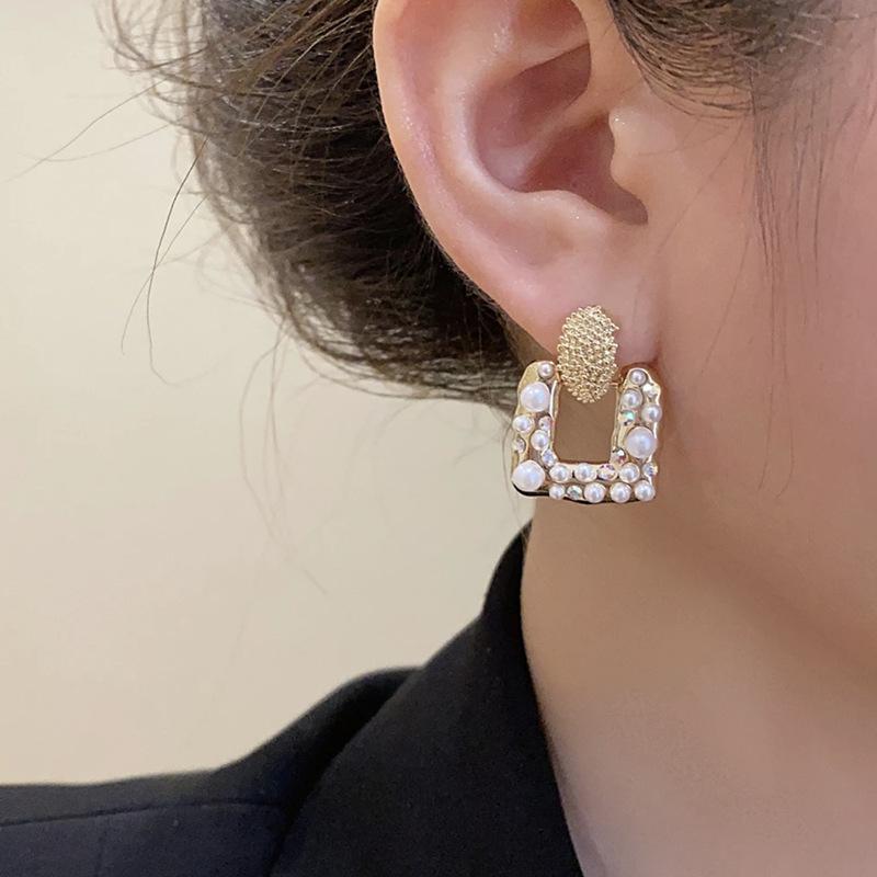 Геометрия квадратная полностью кристалл искусственный жемчуг серьги-капли для женщин сладкий темперамент креативный ювелирный аксессуар