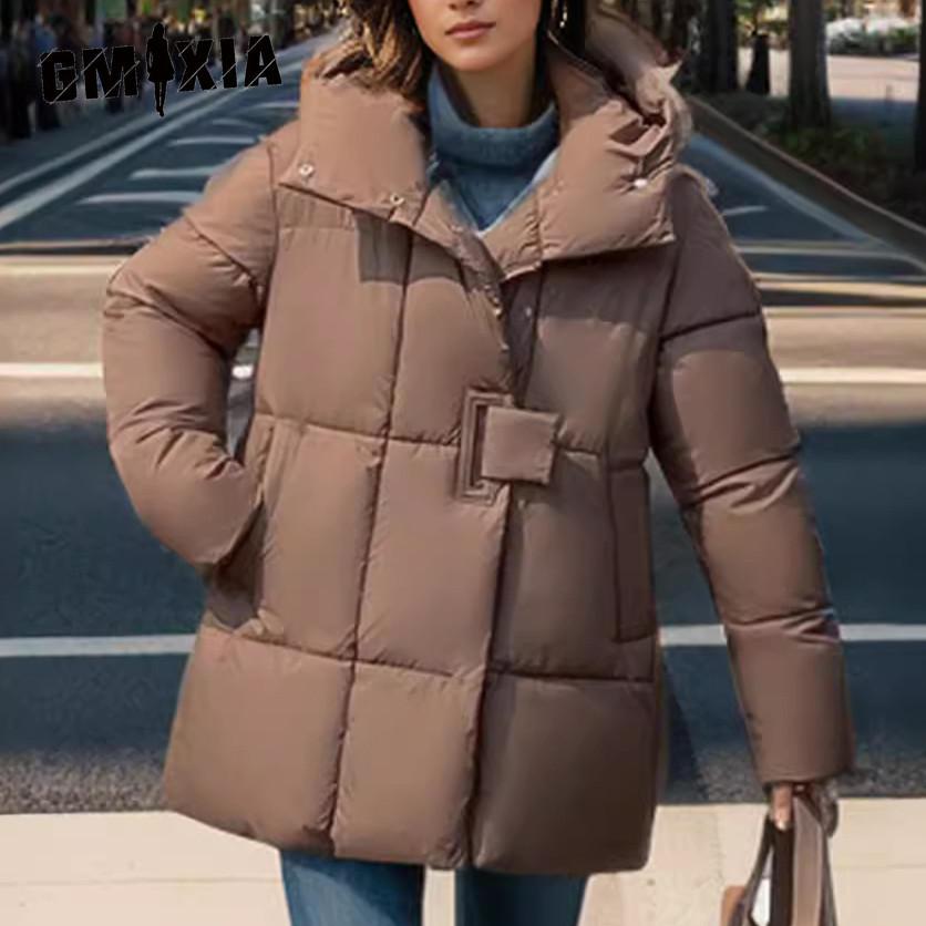 GMXIA Женские винтажные повседневные однотонные куртки и пальто с капюшоном с длинными рукавами и осенне-зимним принтом