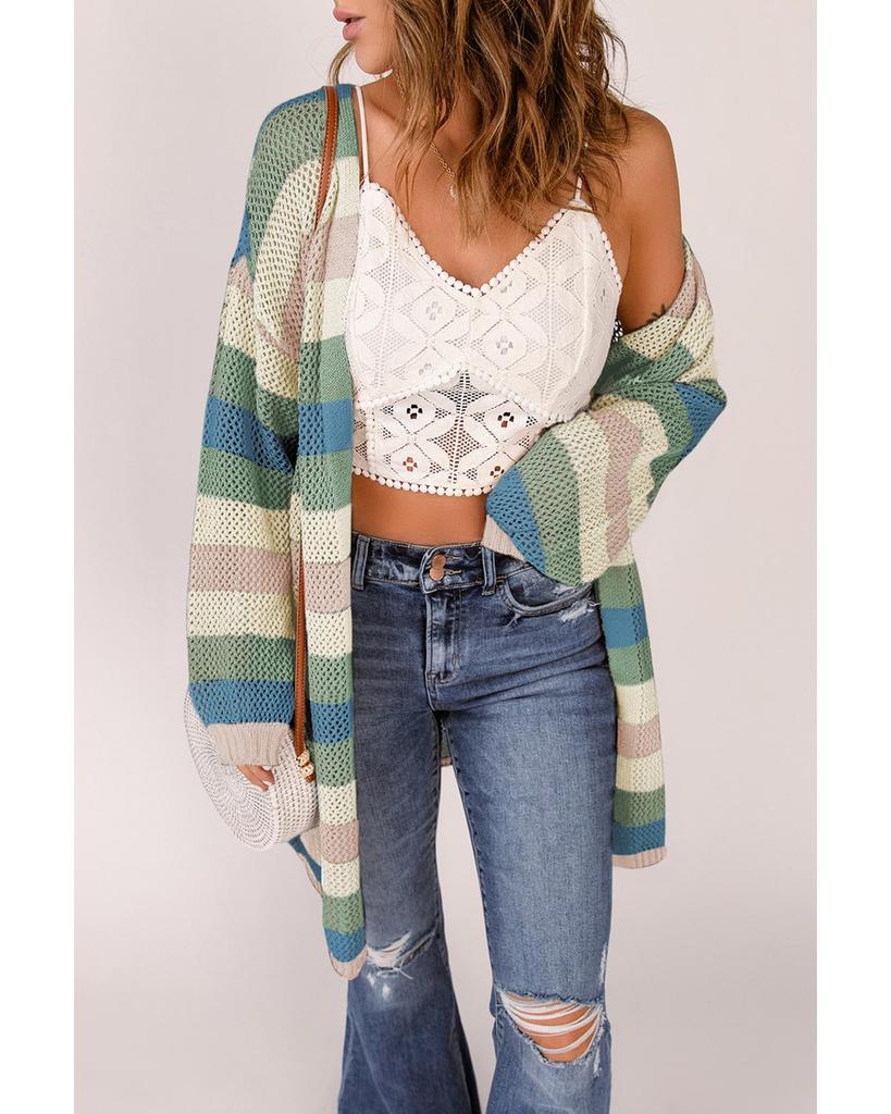 Azura Exchange Кардиган с ажурной вязкой в стиле колор-блок