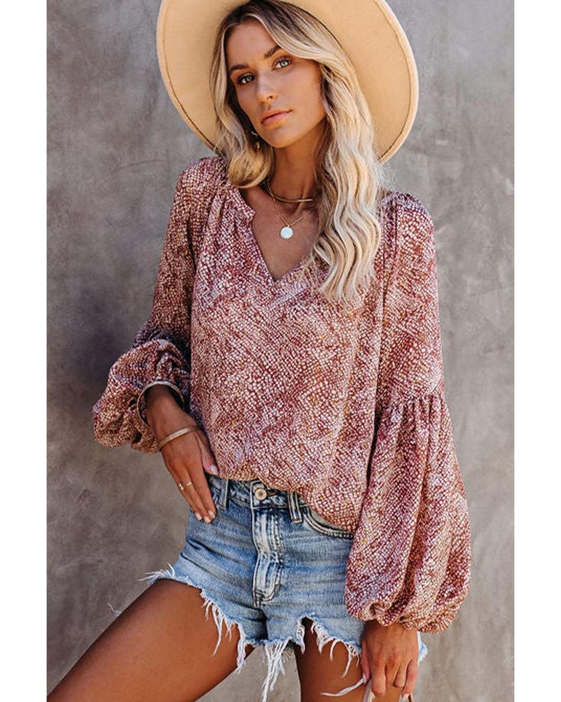 Azura Exchange Блузка с плиссированными рукавами-фонариками и абстрактным принтом