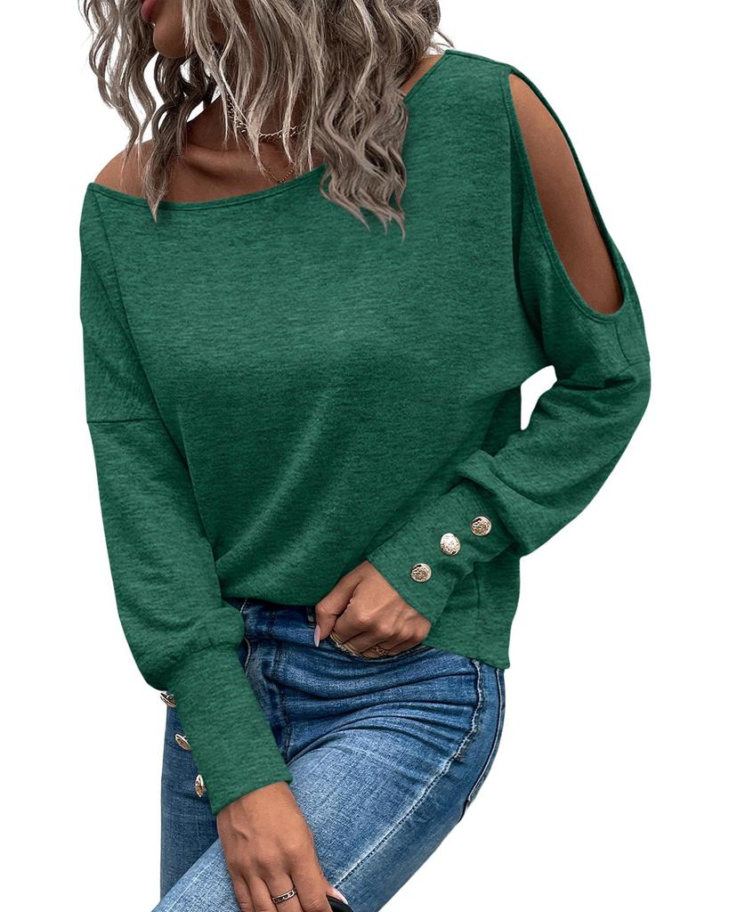 Azura Exchange Зеленый асимметричный вырез на пуговицах с длинным рукавом