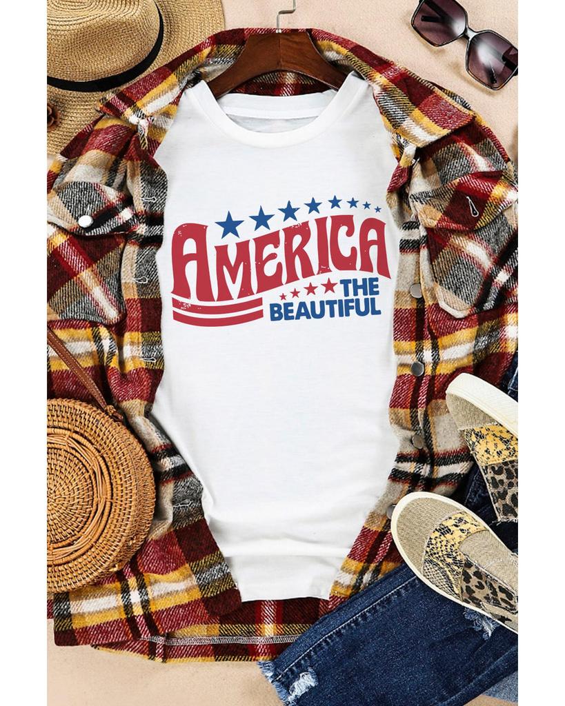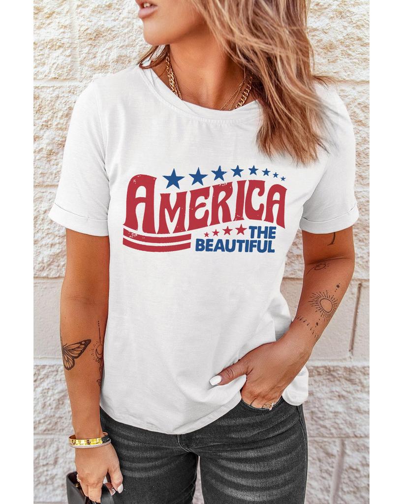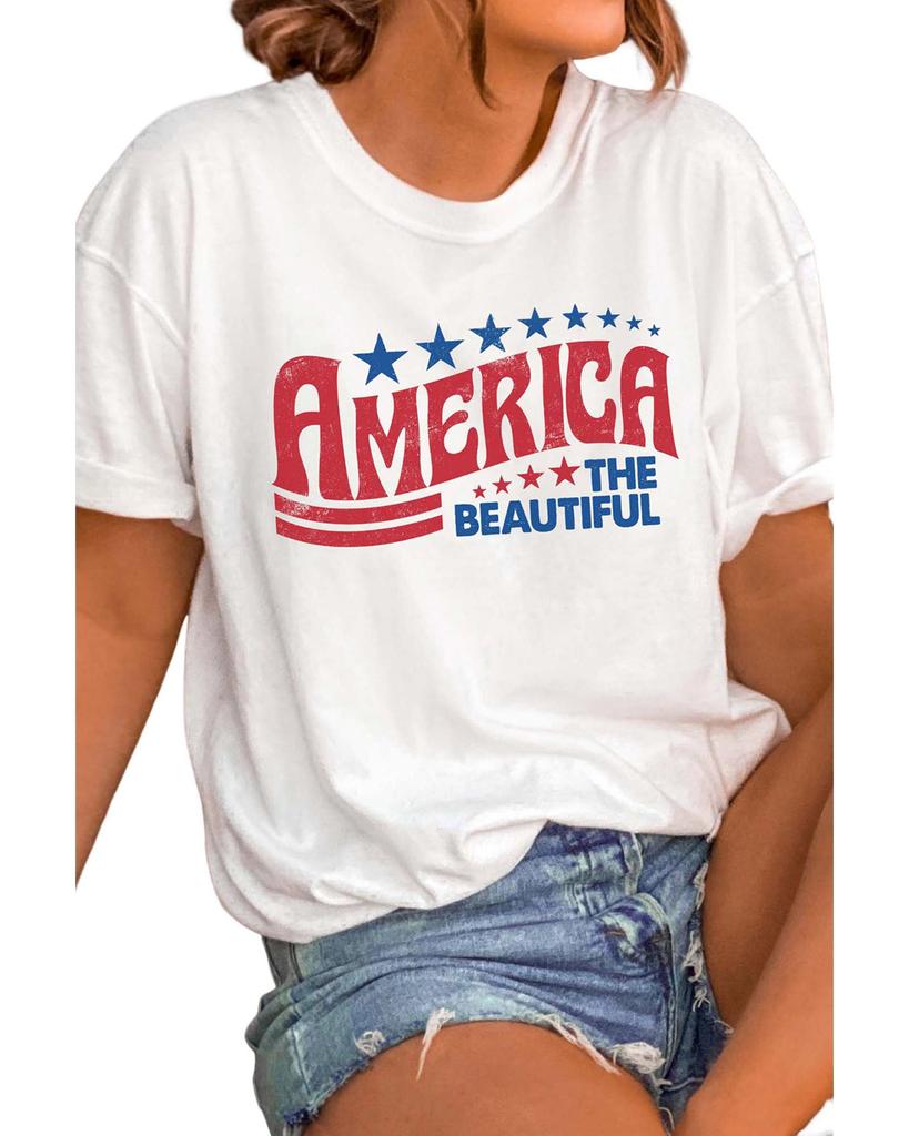 Azura Exchange Белая футболка с патриотическим графическим принтом «АМЕРИКА ПРЕКРАСНАЯ»