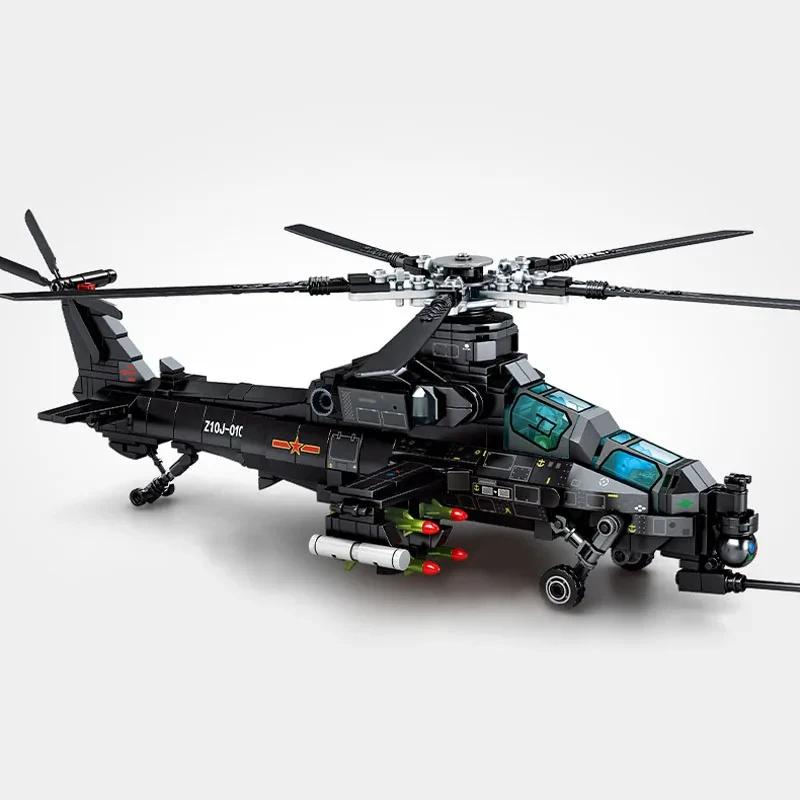 Технический военный вертолет Z-10 модель строительные блоки городской спецназ вооруженный самолет боевой вертолет военный корабль кирпичи игрушки для детей взрослый подарок