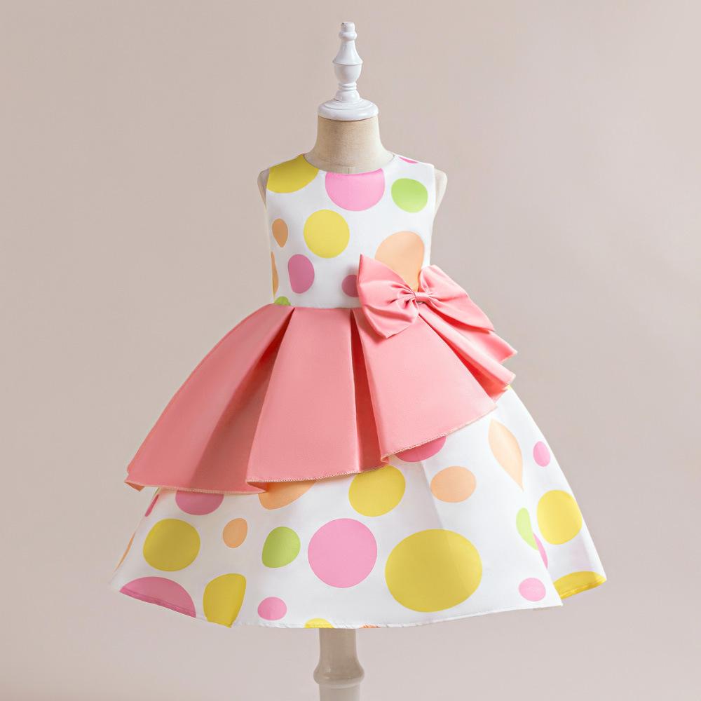 Плиссированные платья в горошек для девочек, вечернее платье принцессы, одежда без рукавов для девочек, детские костюмы на день рождения, свадьбу, официальную одежду для детей