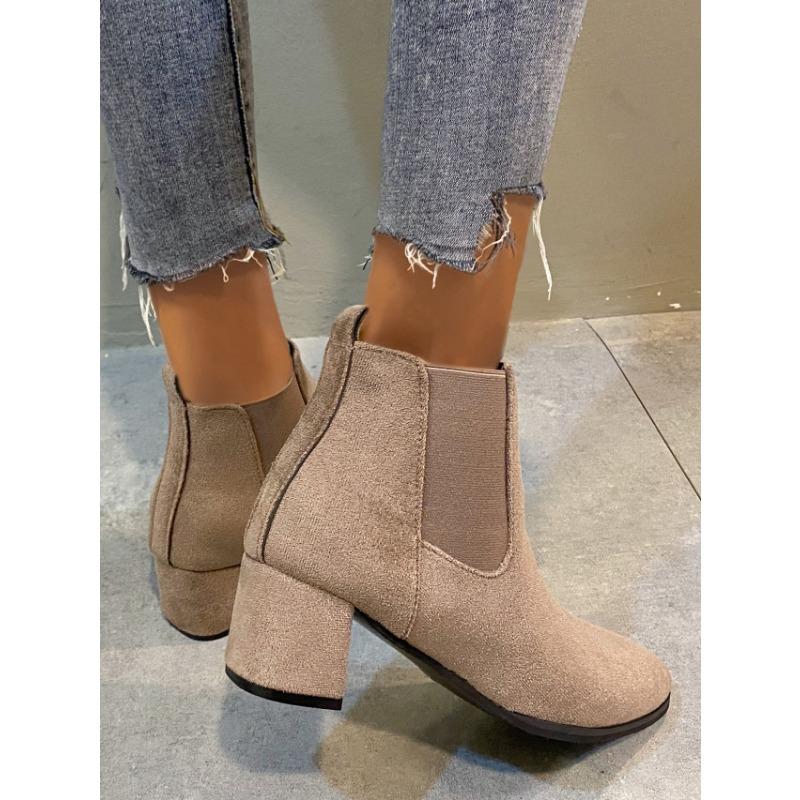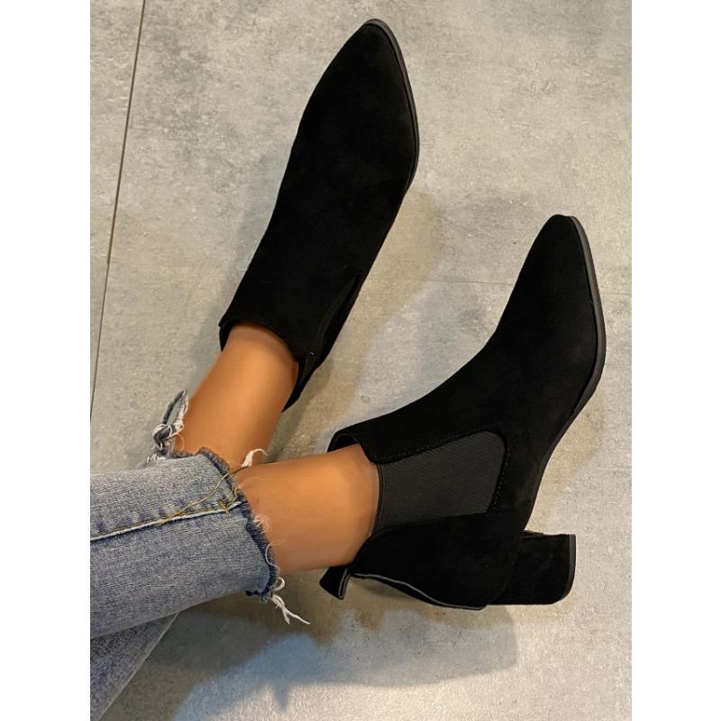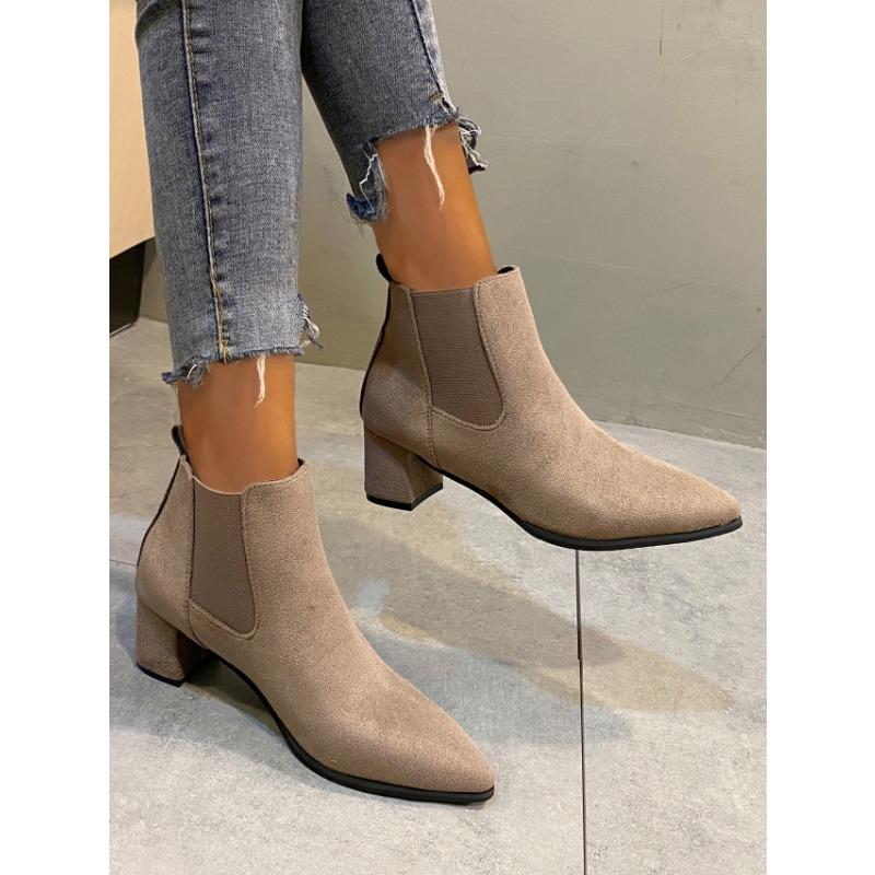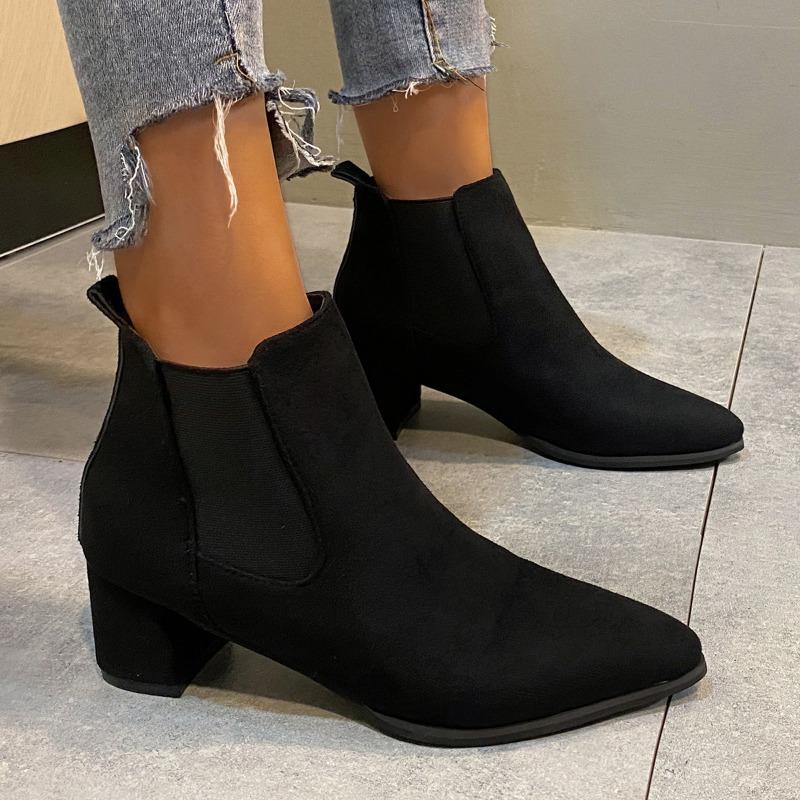 Женские сапоги из французской матовой кожи, одинарные сапоги, женские осенне-зимние сапоги, новый стиль, короткие сапоги с острым носком, толстый каблук