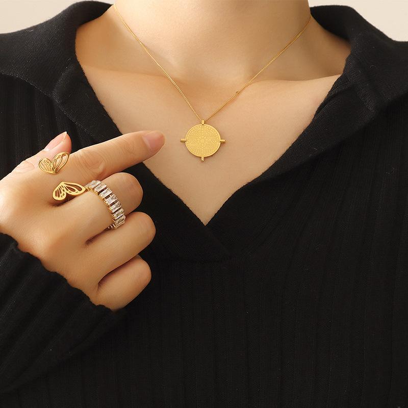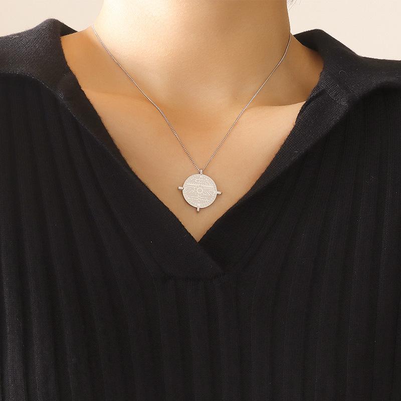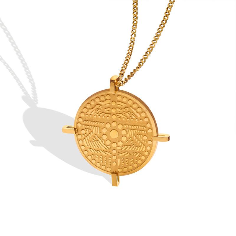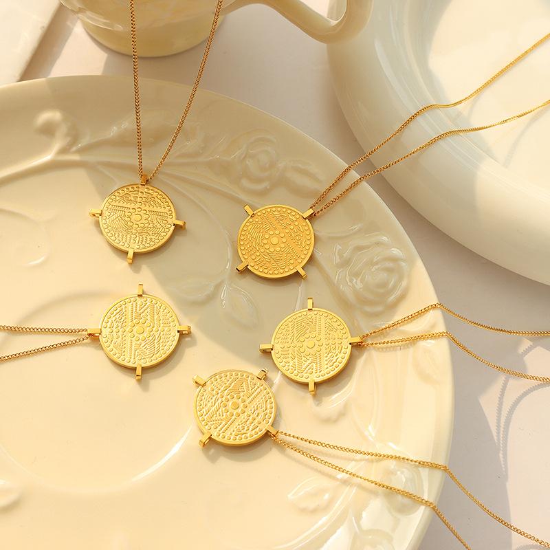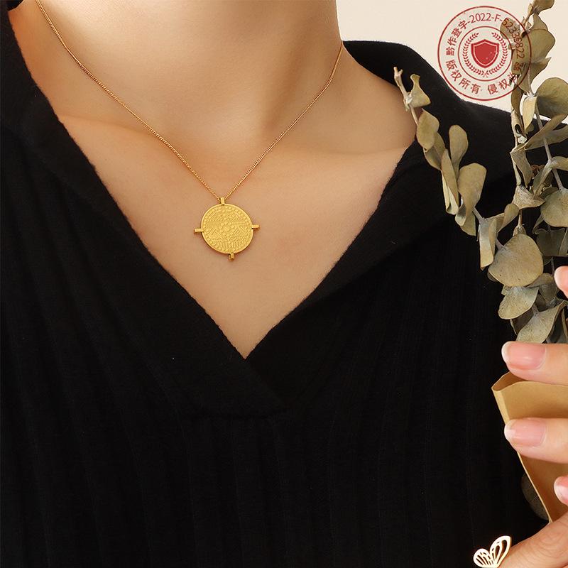 Французское художественное рельефное круглое фирменное геометрическое ожерелье с подвеской из титановой стали, позолоченные ювелирные изделия, аксессуары в стиле ретро на ключицу