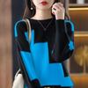 Свитер женский осенне-зимний женский вязаный теплый свитер с цветными блоками, длинный рукав, термопуловеры с круглым вырезом, повседневный свободный свитер для женщин