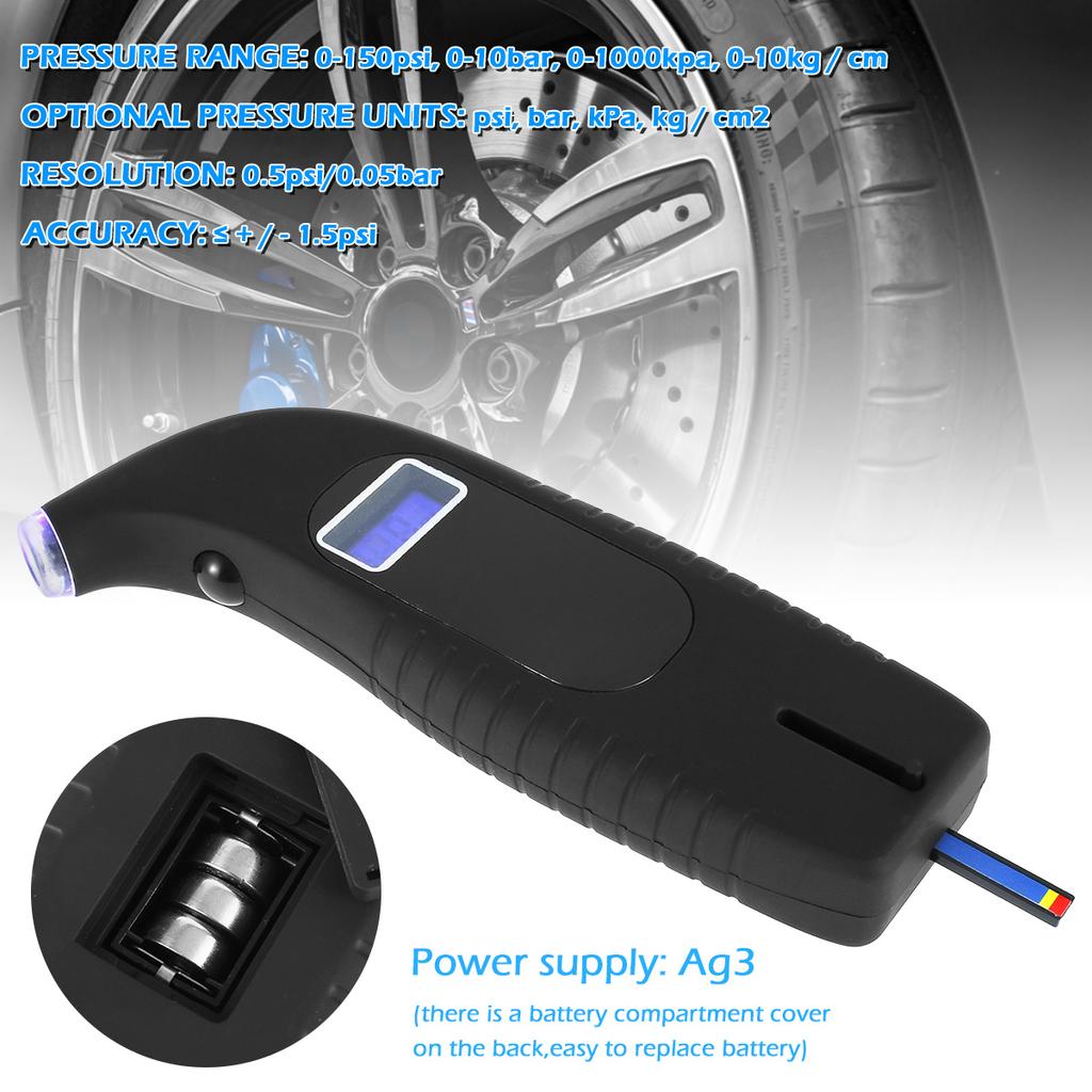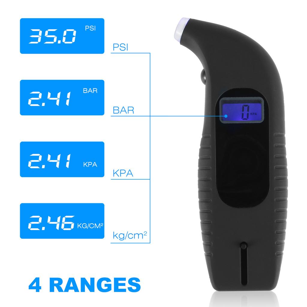 [Цифровой манометр] Этот цифровой манометр для шин может считывать максимальное давление воздуха до 150 фунтов на кв. дюйм с разрешением ± 0,5 фунтов на кв. дюйм и имеет 4 измерительных блока.: PSI, BAR, KPA, KG/CM2 для удовлетворения различных потребностей в инспекции.