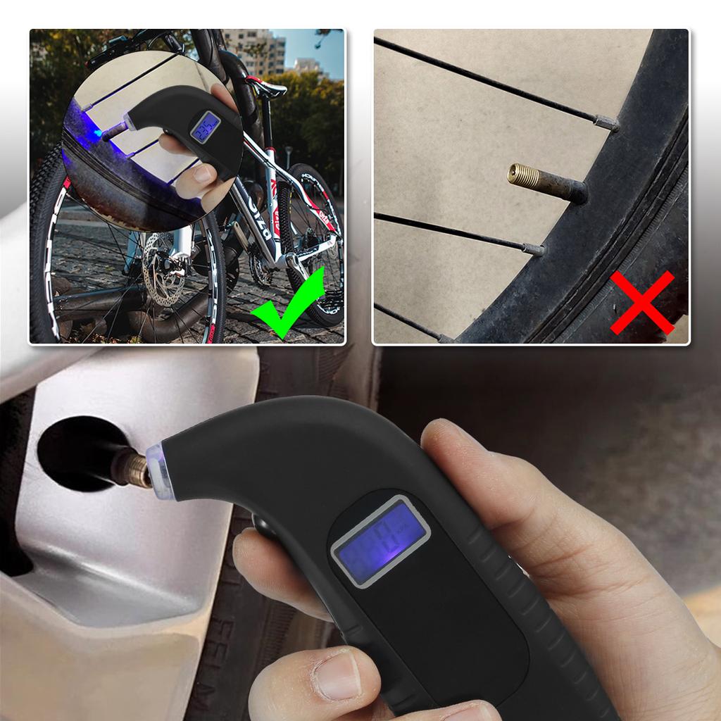 [Экран с подсветкой] Этот цифровой манометр для измерения давления в шинах оснащен ЖК-дисплеем с подсветкой для удобства считывания данных, который наглядно и точно отображает их.