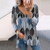 Женские осенние футболки с длинным рукавом и геометрическим принтом в форме ромба, свободные футболки с V-образным вырезом больших размеров, удобные блузки — купить товар онлайн с бесплатной доставкой по всему миру!