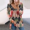 Женские осенние футболки с длинным рукавом и геометрическим принтом в форме ромба, свободные футболки с V-образным вырезом больших размеров, удобные блузки