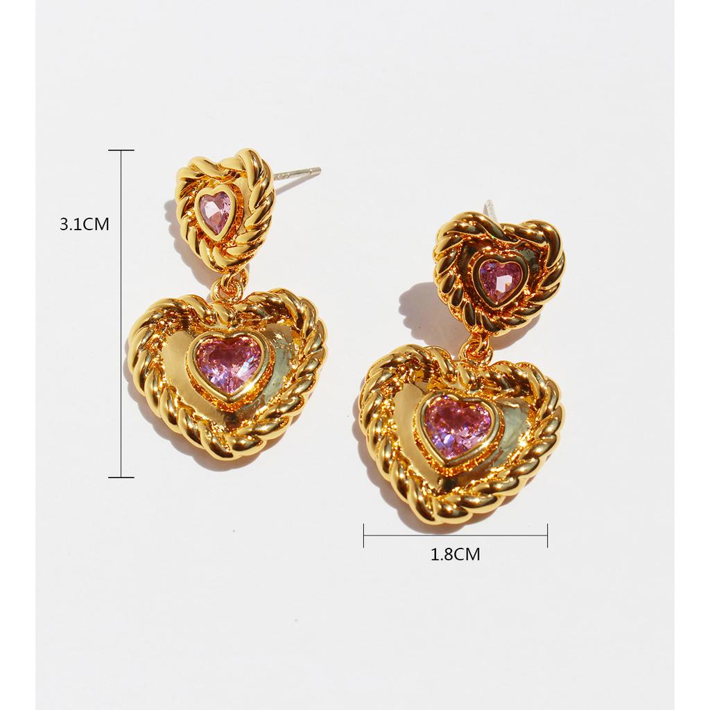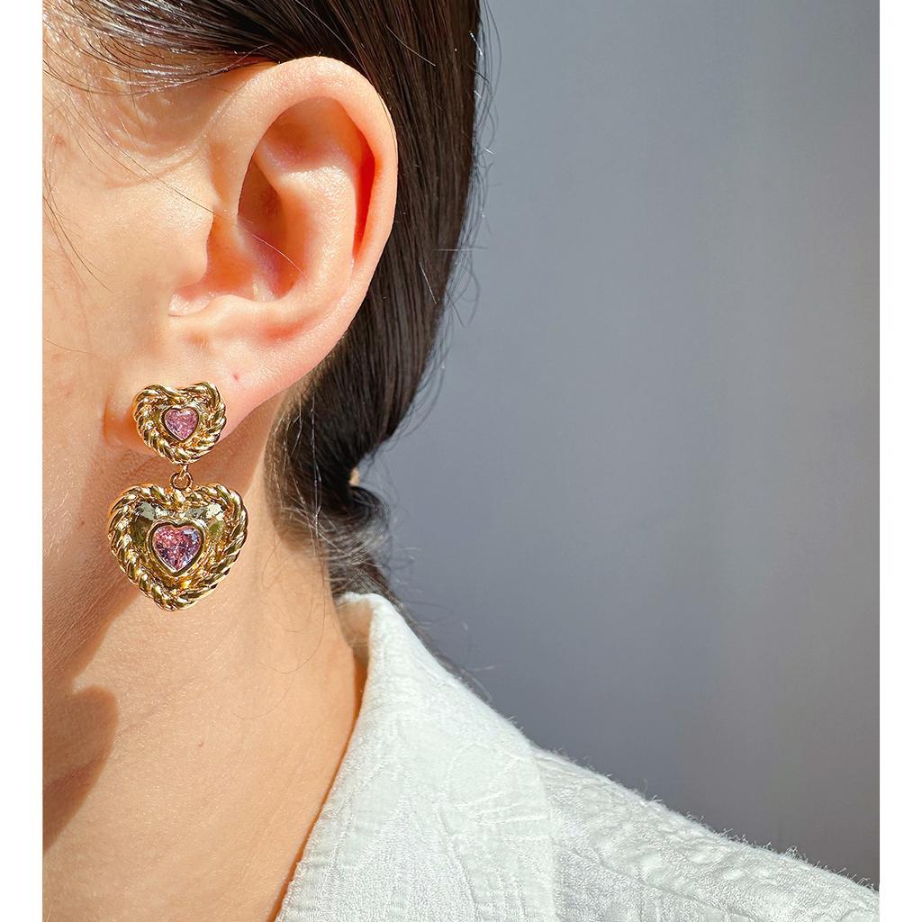 Серьги French Retro Twist Phnom Penh Love, женские, темпераментные, розовые, циркониевые, персиковые, сердечки, серьги женские 92