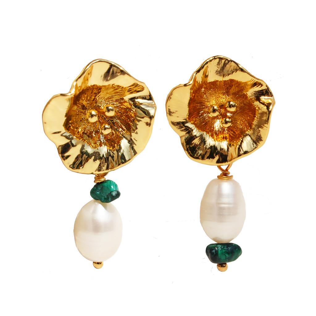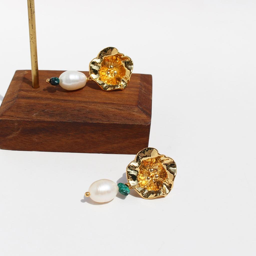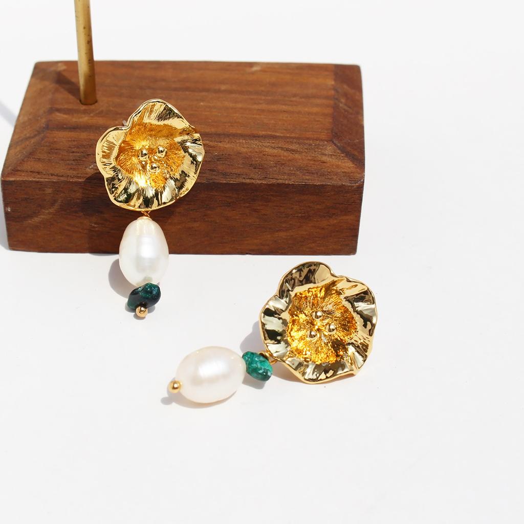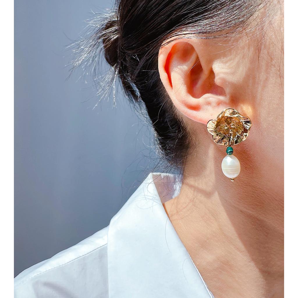 Романтичные ретро-текстурные цветочные серьги на ухо женские легкие роскошные темпераментные пресноводные жемчужные серьги-гвоздики Ab 445