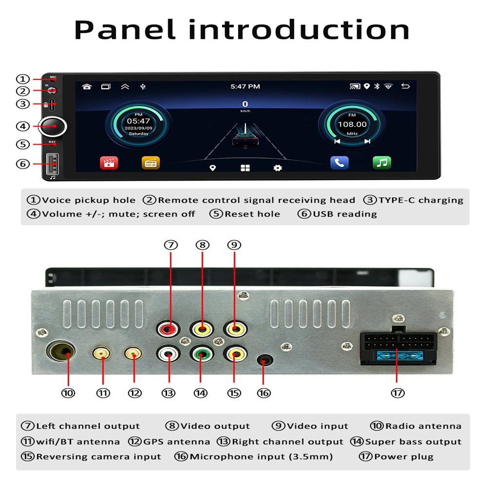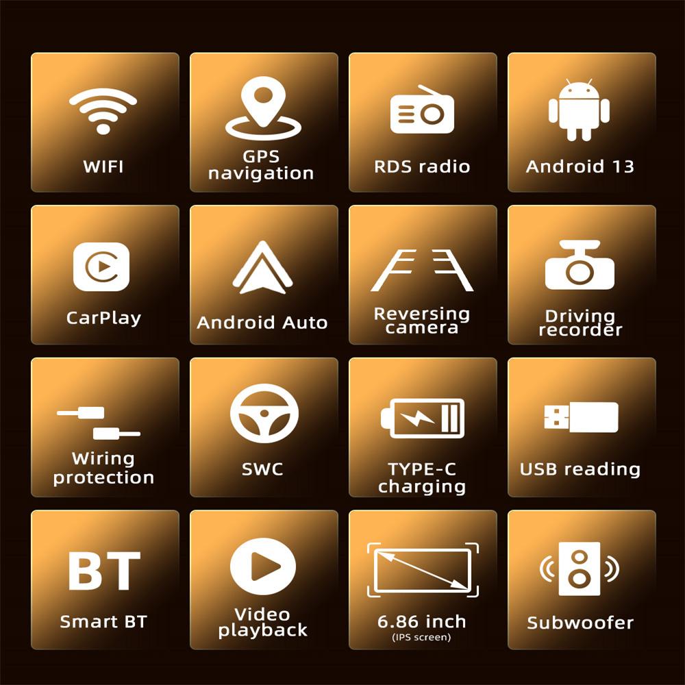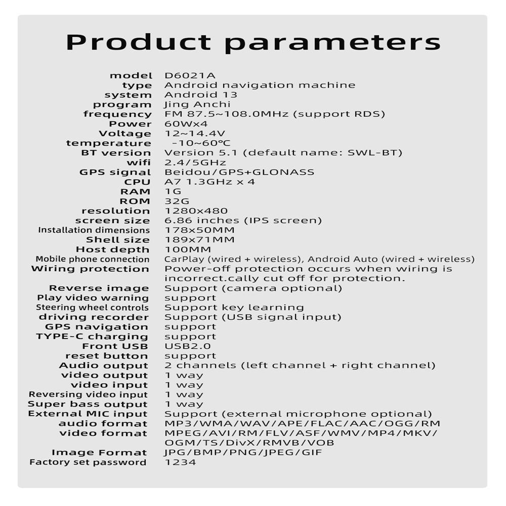 1 Din Android Car Radio Wireless CarPlay Android-Auto Wifi Bluetooth Handsfree GPS FM RDS USB 6.86" IPS экран Головное устройство BD6021A