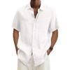 Мужские рубашки из хлопка и льна с короткими рукавами, летние однотонные, с отложным воротником, повседневные, пляжного стиля, топы больших размеров