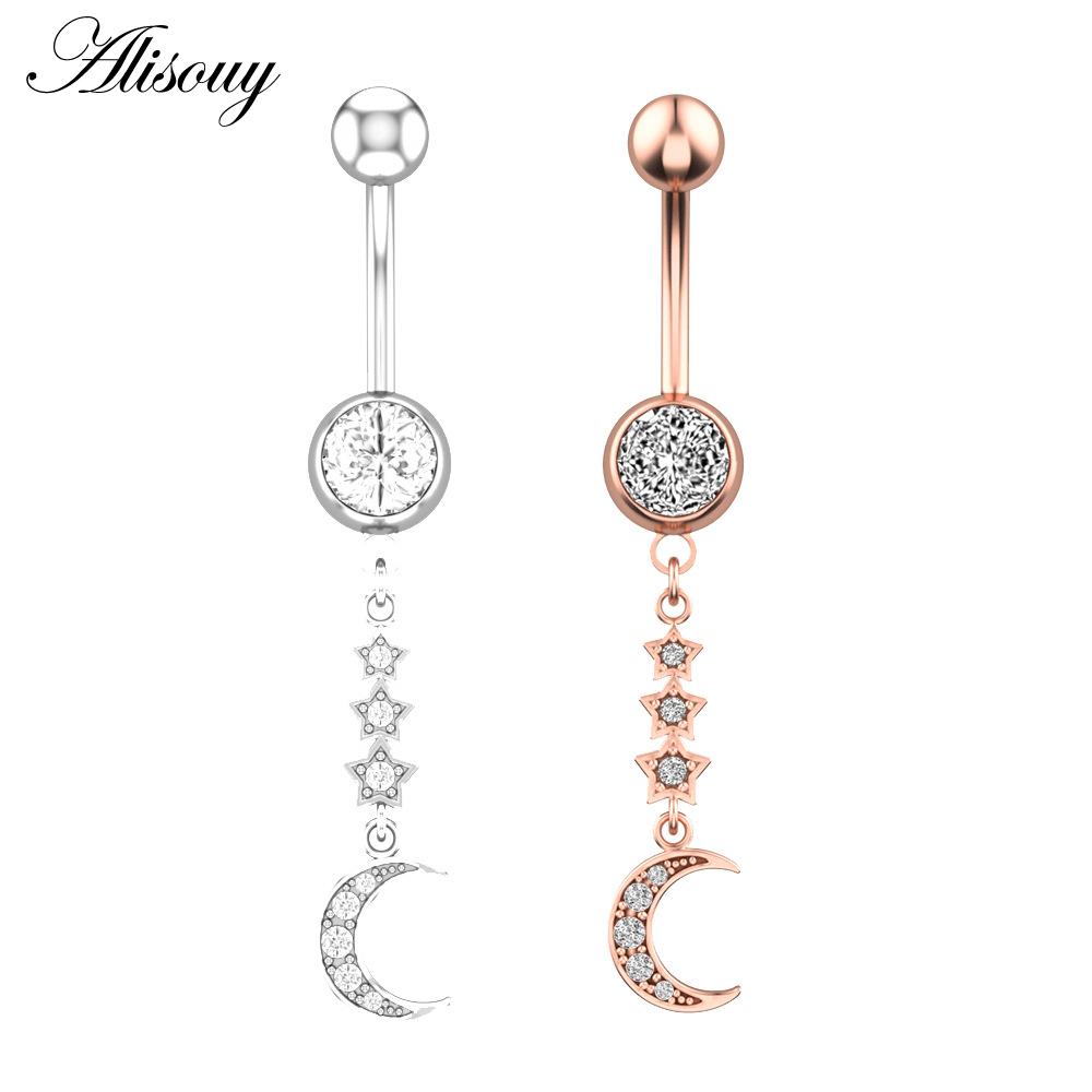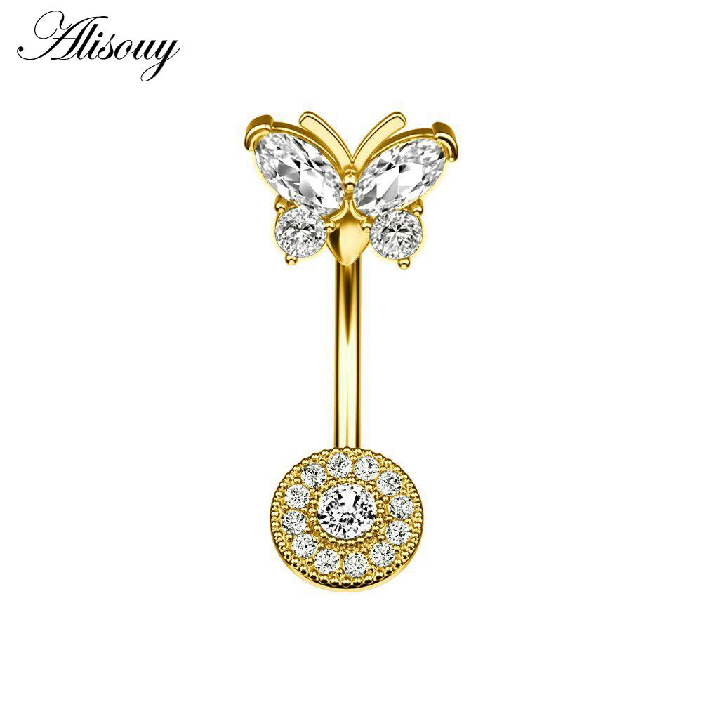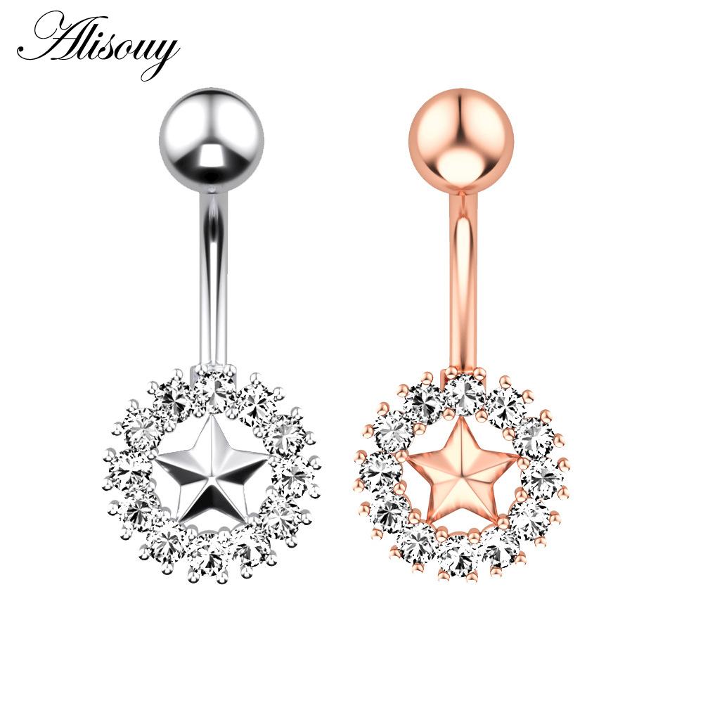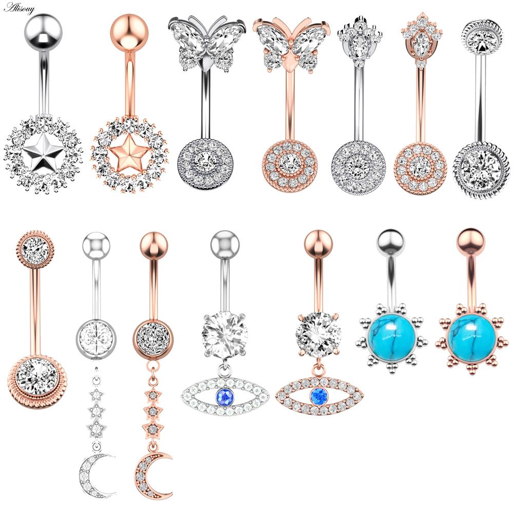 Alisouy 1 шт. хирургическая сталь кристалл циркон звезда бабочка лунные камни пуговица пирсинг пупка кольцо для живота украшения для тела