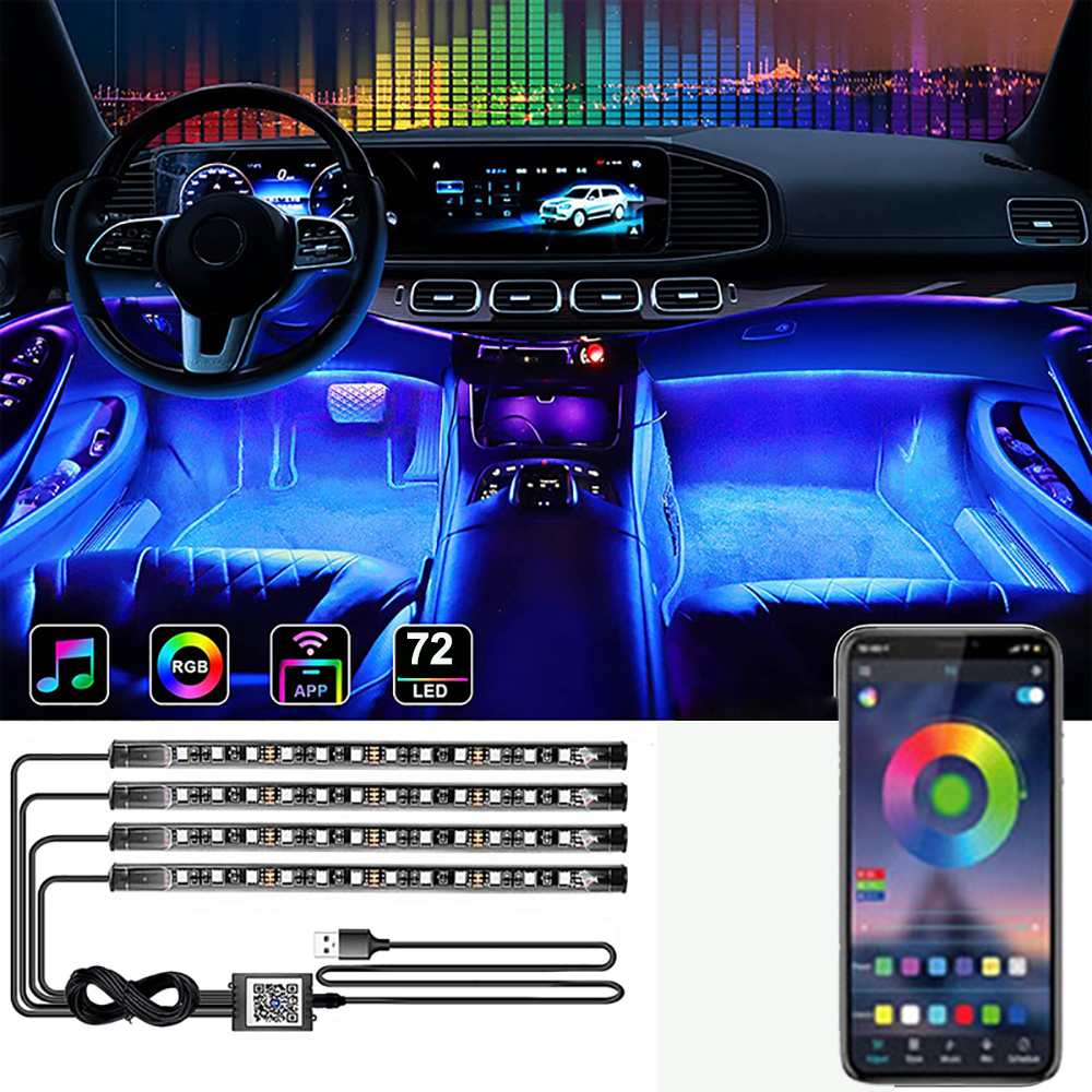 72LED One For Four Car Interior Ambient Foot Strip Light Backlight Remote App Music Control RGB Decorative Lamps