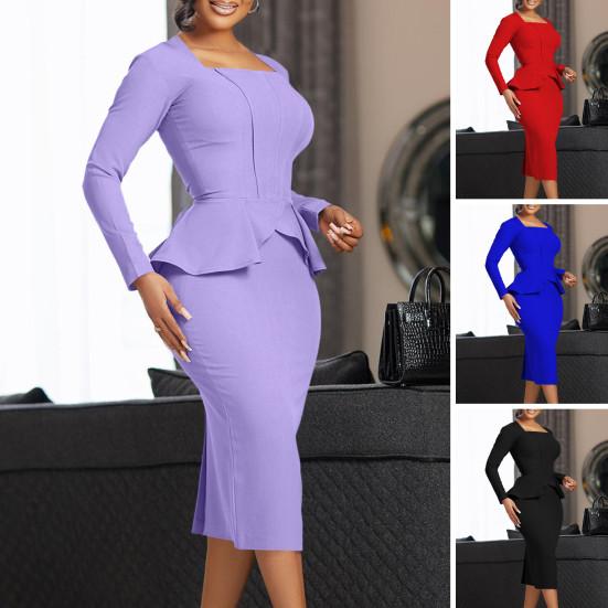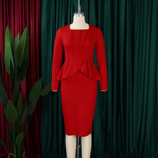 Подчеркните свой стиль с помощью этого шикарного и универсального платья.. Идеально подходит для повседневной носки, поездок на работу, вечеринок, встреч или просто выходов в свет.. Платье однотонное, с квадратным вырезом и длинными рукавами, излучает модный и сексуальный образ.. Облегающий крой легко подчеркивает вашу фигуру.. Фальшивый дизайн из двух частей с оборками добавляет нотку элегантности.. Изготовленное из высококачественной ткани, это платье обеспечивает комфорт и долговечность..