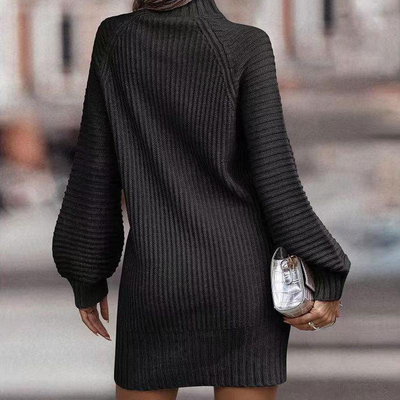 Женское осенне-зимнее повседневное трикотажное платье-свитер с высоким воротом и длинными рукавами