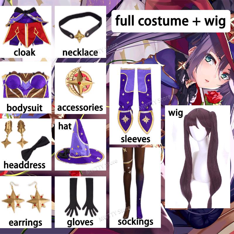Мона Косплей Игра Астролог Мона Мегист Косплей Костюм Сексуальная Аниме Униформа Платье Парик Одежда на Хэллоуин