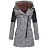 Осень и зима новый стиль диагональная молния с капюшоном шерстяная ветровка средней длины утолщенное теплое пальто хлопковое пальто для женщин