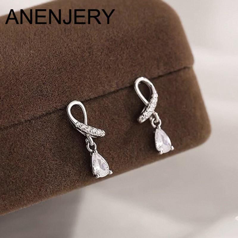 ANENJERY Серьги-гвоздики с каплями воды и цирконием для женщин, элегантные, креативные, модные, ювелирные изделия, подарки, ежедневно