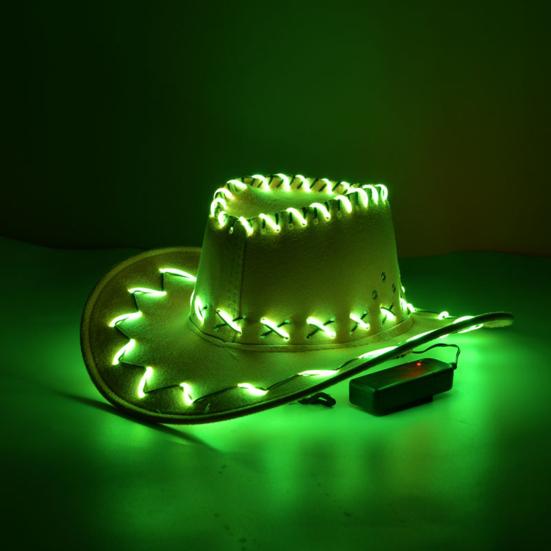 Выделитесь на любом мероприятии с нашей светодиодной ковбойской шляпой в стиле вестерн! Эта шляпа, изготовленная из высококачественных материалов, отличается уникальным дизайном, который сделает вас душой компании.. Светящаяся медная проволока и ПВХ-материал в сочетании с регулируемым контроллером света позволяют настраивать мигающие огни в соответствии с вашим стилем.