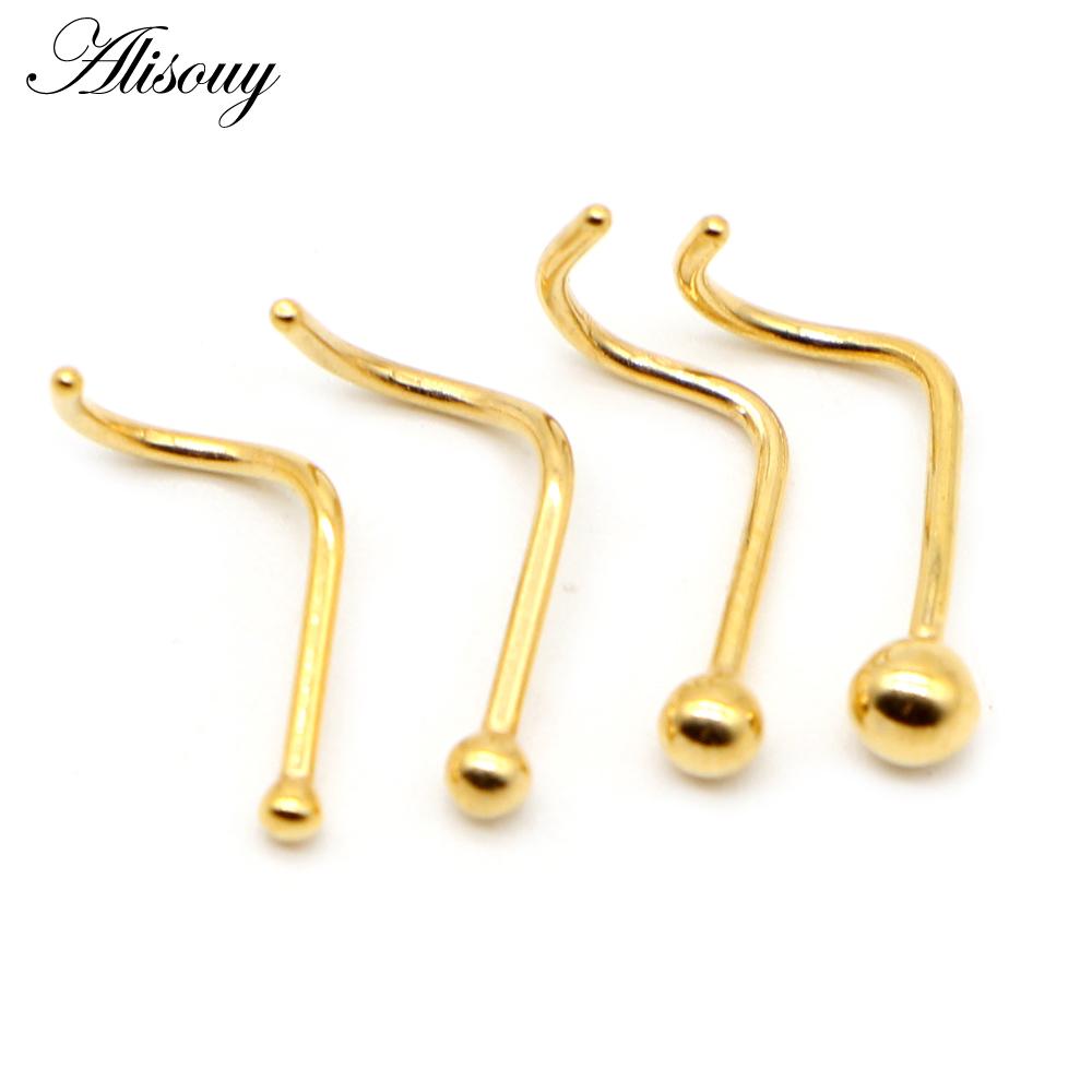 Alisouy 1 шт. маленькие шариковые кольца для носа, пирсинг, серьги-гвоздики 1,5 мм, 20 г, хирургическая нержавеющая сталь, цвет черного золота, украшения для тела