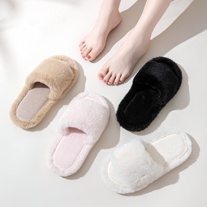 Женские зимние плюшевые тапочки, модные комнатные тренды, внутри и снаружи, для дома, плоская подошва, однотонные, плюшевые, повседневные, хлопковые туфли для женщин