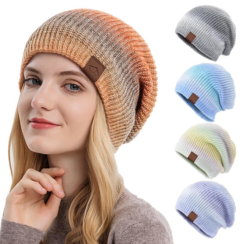 Женская плюшевая вязаная шапка, зимняя теплая, с толстой флисовой подкладкой, шапки-бини Skullies, модная шапочка с градиентным узором, шапка для занятий спортом на открытом воздухе, лыжная шапка для занятий спортом на открытом воздухе