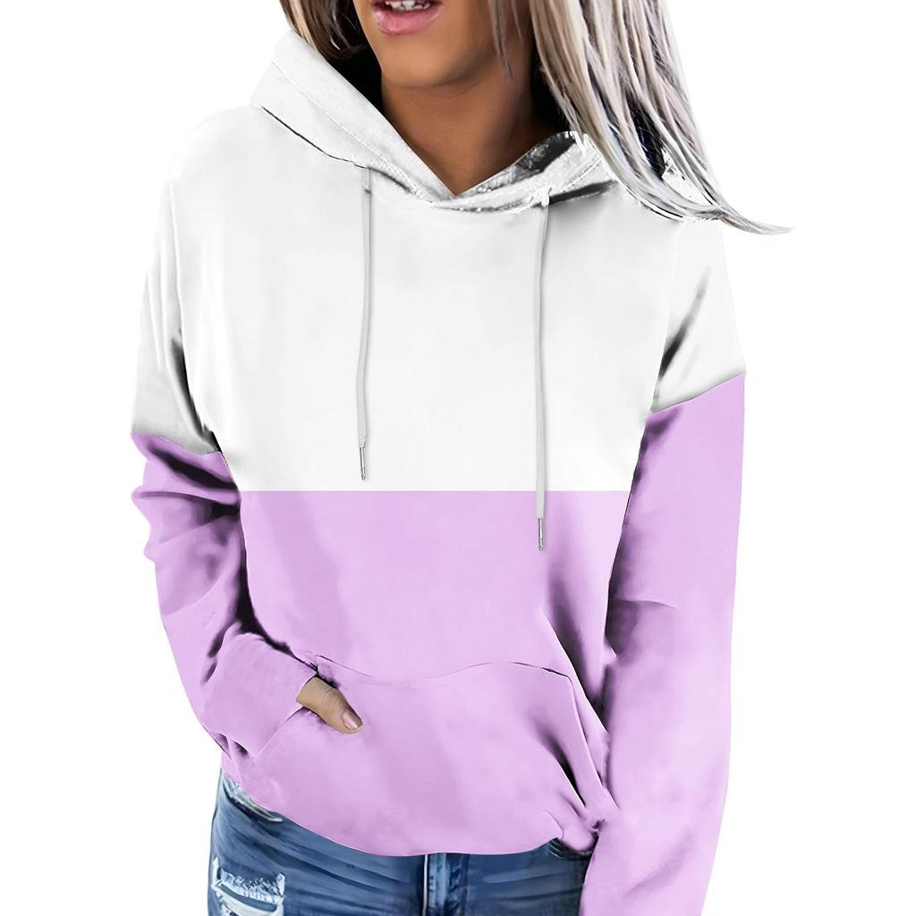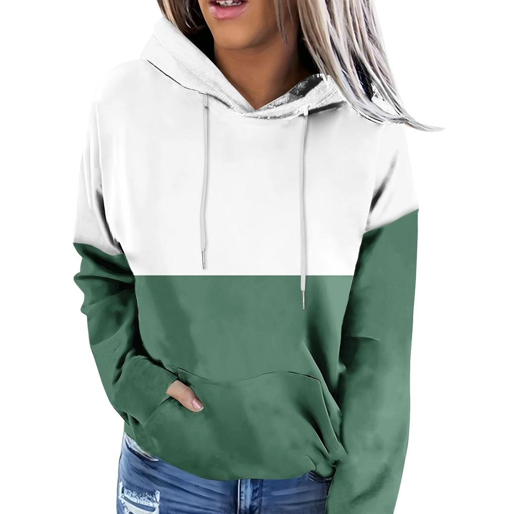 Женская модная толстовка с капюшоном и длинными рукавами в стиле колор-блок с завязками