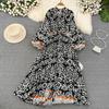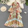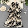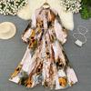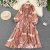 Платья Temperament Lantern Длинные рукава Круглый вырез Тонкий однобортный принтованное платье Элегантные винтажные шикарные женские платья