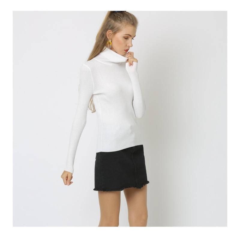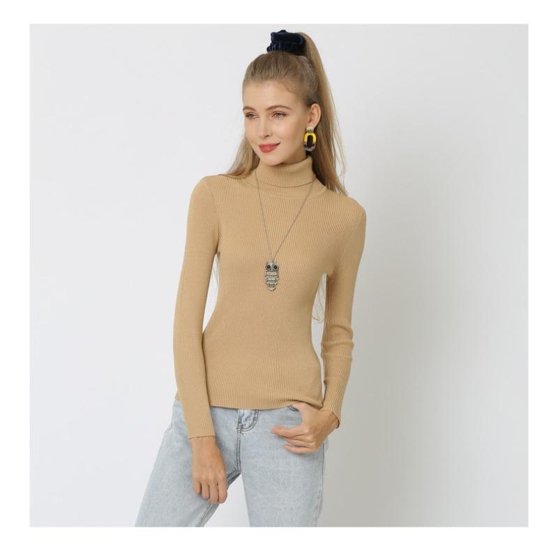 Однотонная рубашка с длинными рукавами, женская водолазка, свитер, тонкий пуловер, базовая версия для поездок на работу, осень-зима