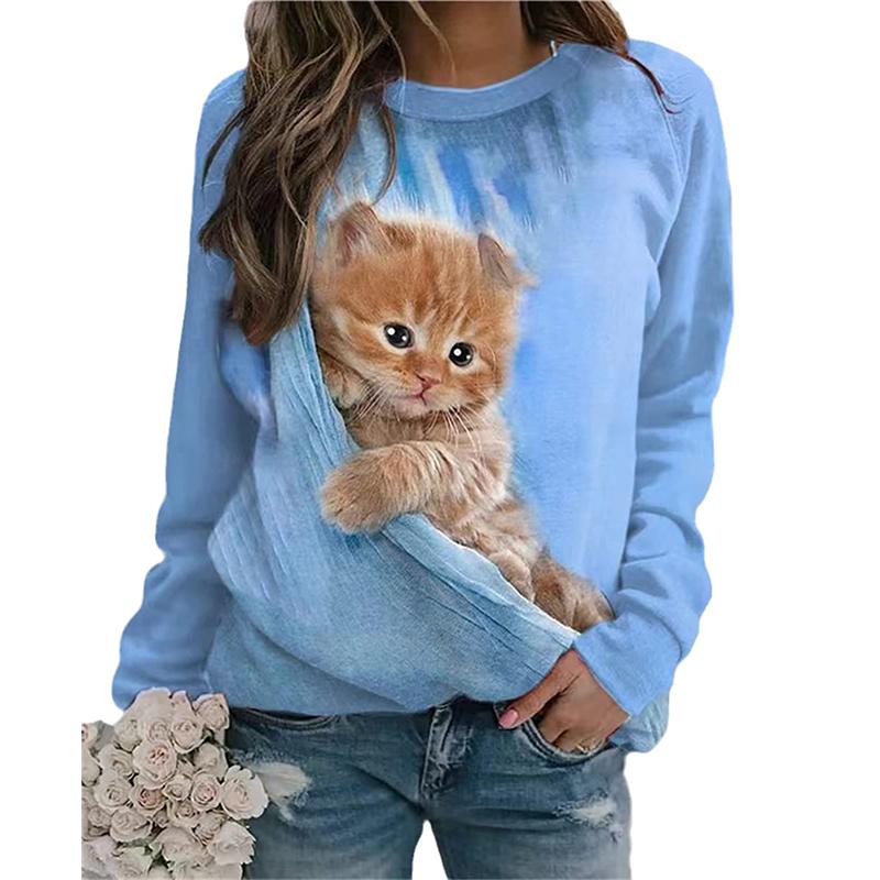 Милые кошачьи толстовки с принтом животных 3D толстовки женские модные с круглым вырезом и длинным рукавом толстовка Y2k большие пуловеры верхняя женская одежда — купить товар онлайн с бесплатной доставкой по всему миру!