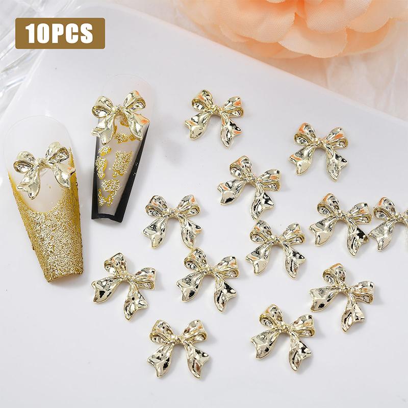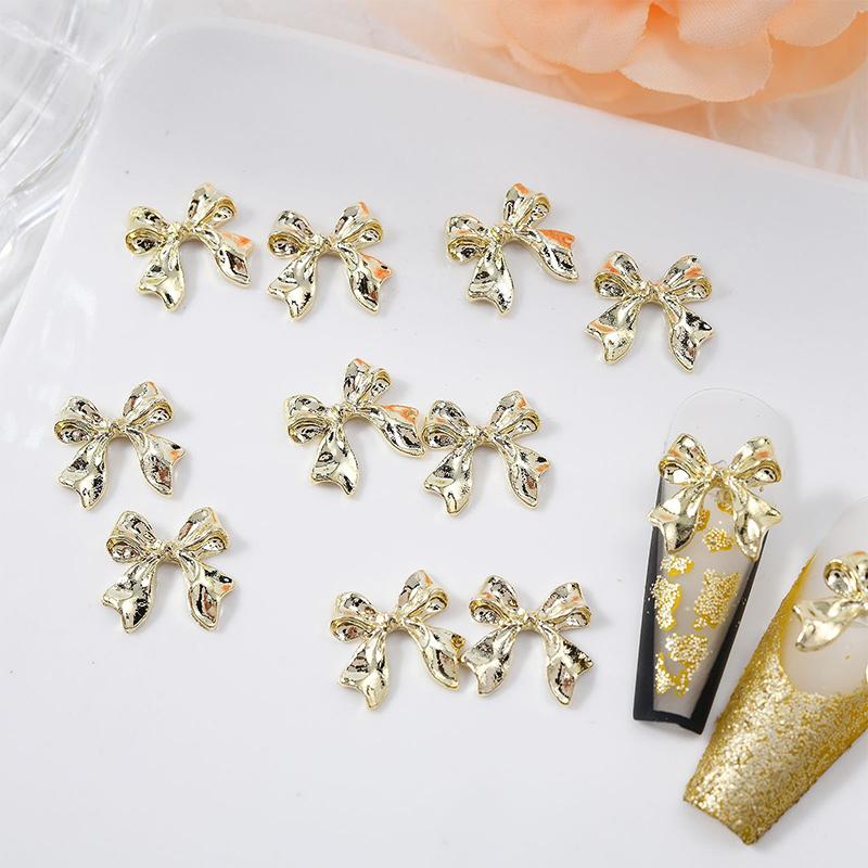 10 шт. металлические банты для дизайна ногтей, очаровательные 3D сплавы, золотые ленты с бантом, детали декора для ногтей, роскошные аксессуары для маникюра Diy