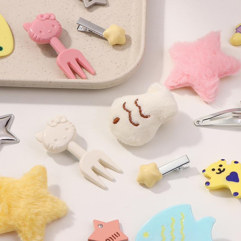 15 шт./компл., милая заколка для волос для девочек-студенток, плюшевые звездочки, милая рыбка, сушеная заколка для волос, челка, боковая заколка