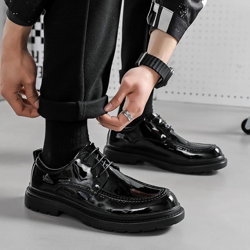 Кожаные мужские повседневные туфли на шнуровке оксфорды ретро топ люкс качество лакированные туфли Brugg офисная деловая обувь для мужчин